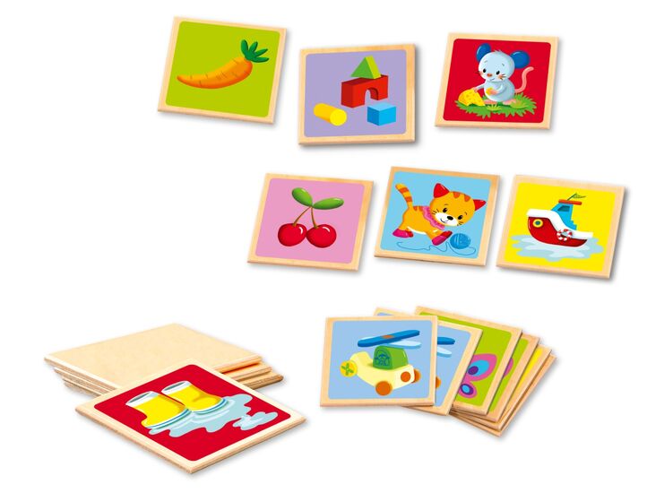 The cards are scattered on the table with the pictures facing downwards. Who has the best memo and can find the most pairs of pictures?