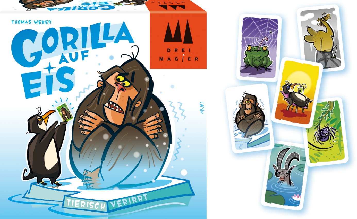 Berlin, Frühjahr 2026. Ein Gorilla auf der Eisscholle? Da stimmt doch etwas nicht. Im ewigen Eis fühlt sich der Bewohner des Regenwalds doch gar nicht wohl. Da hilft nur die blitzschnelle Suche nach dem geeigneten Lebensraum. Mit „Gorilla auf Eis“ bringt Drei Magier® ein rasantes Kartenspiel heraus, bei dem Tempo, Überblick und flinke Hände gefragt sind.