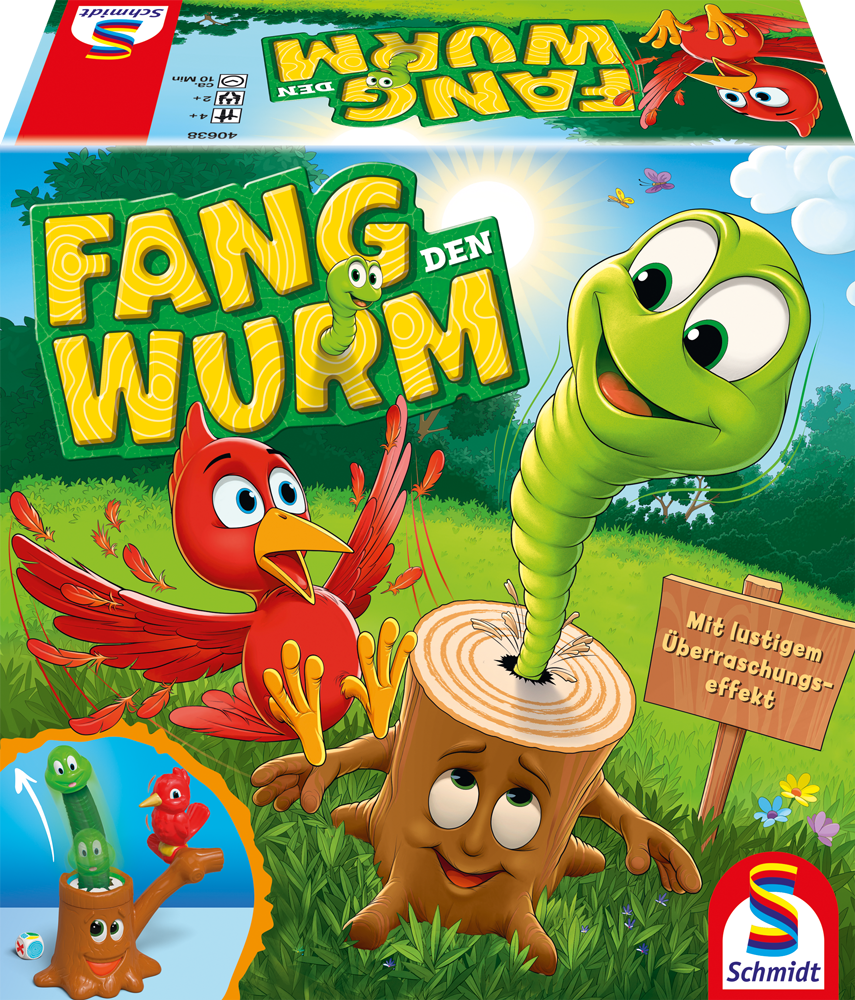 Berlin, Frühjahr 2023. Der frühe Vogel fängt den Wurm! So auch in der actiongeladenen Frühjahrsneuheit von Schmidt Spiele®: Der hungrige Specht hat es auf den Wurm im Baumstamm abgesehen und pickt munter drauf los. Alle Spielenden helfen dem Wurm, an der richtigen Stelle zu klopfen, bis der grüne Geselle aus seinem Versteck hervorspringt. Wer dies schafft, hat gewonnen. Das schnelle Kinderspiel mit Überraschungseffekt kann von zwei oder mehr Personen ab vier Jahren gespielt werden.