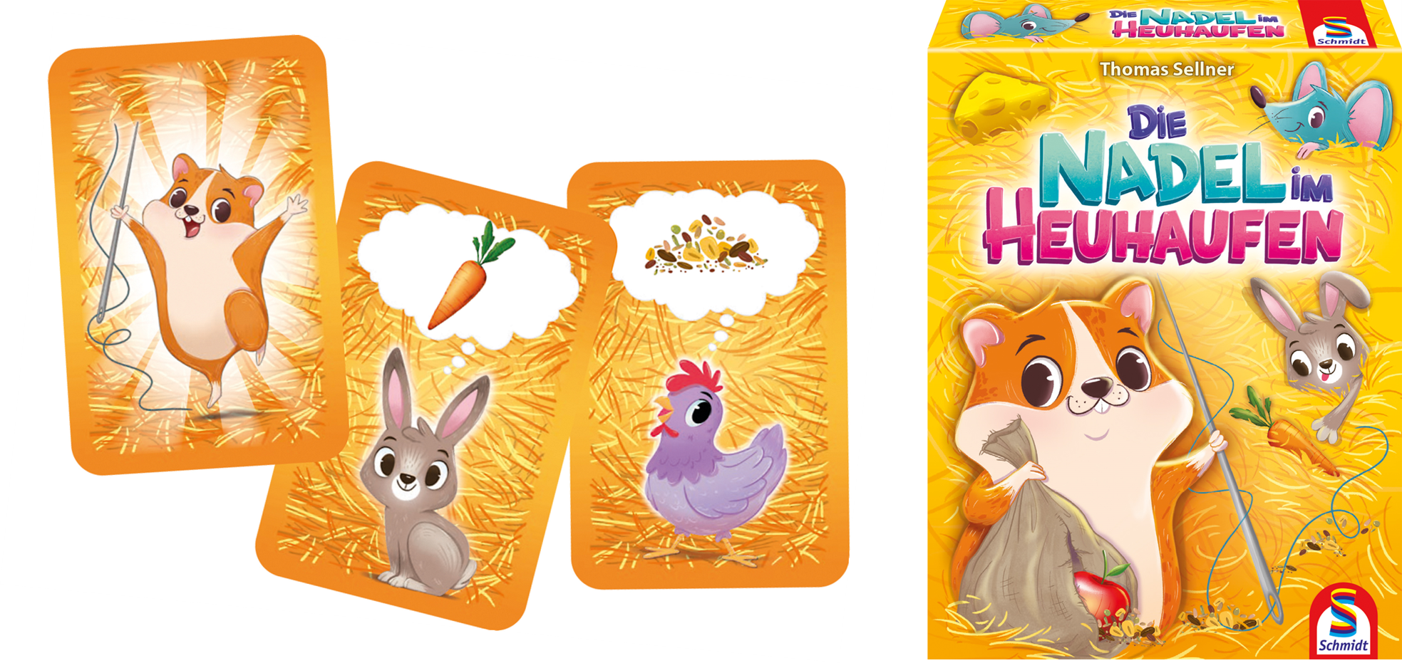 Gut im Heuhaufen, wo die anderen Tiere nur darauf warten, ihr Lieblingsfutter zu ergattern. Bei dem neuen Kinderkartenspiel „Die Nadel im Heuhaufen“ von Schmidt Spiele® versuchen