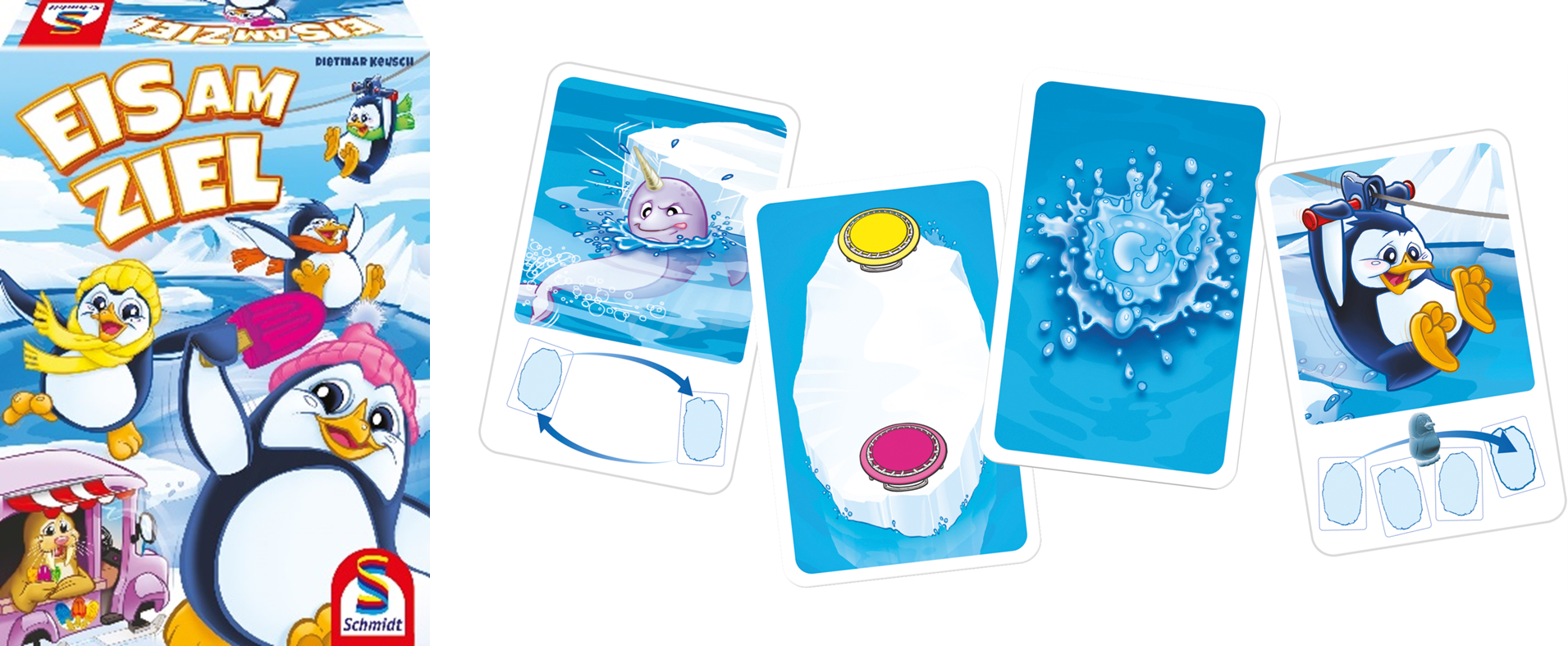 Berlin, Herbst 2023. Eis am Stiel? „Eis am Ziel“! In der Kinderspielneuheit von Schmidt Spiele® versuchen die Spielenden als kleine Pinguine möglichst schnell von der Schule zu