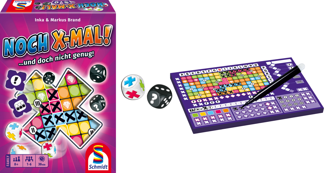 Berlin, Frühjahr 2026. Zehn Jahre Würfelspaß – zehn Jahre lang heißt es nach jeder Partie „Noch Mal!“. Zum runden Jubiläum der erfolgreichen Serie bringt Schmidt Spiele eine weitere Auskopplung auf den Markt, die einen neuen Twist im bekannten Spielmechanismus verspricht: „Noch X-Mal!“ bringt das erfolgreiche Spiel mit Suchtfaktor auf eine neue Ebene.