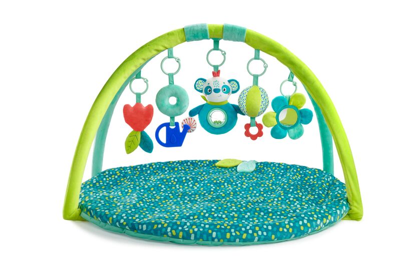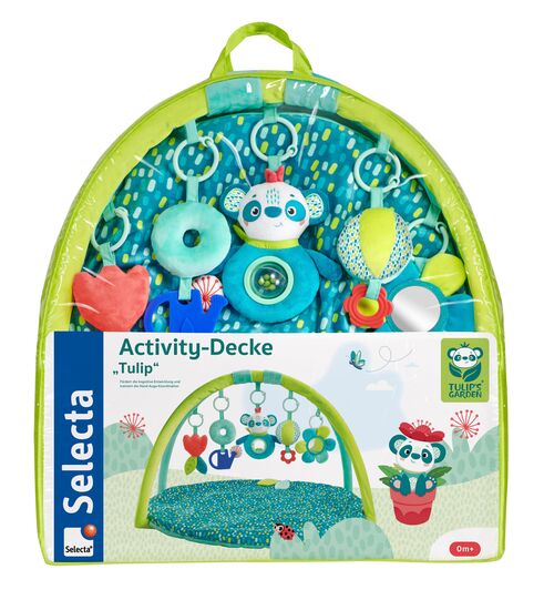 Diese kuschelweiche Erlebnisdecke mit 5 abnehmbaren Anhängern bietet dem Baby von Geburt an Spielspaß in den verschiedenen Wachstumsphasen. Hier lässt sich immer etwas Neues entdecken: Die bunten Klapperperlen, der kleine Spiegel, der klingelnde Ball oder die raschelnden Blätter fördern die kognitive Entwicklung des Kindes und trainieren die Hand-Auge-Koordination. Die Decke lässt sich leicht auf- und abbauen und kann dank ihrer praktischen Selecta® Tasche problemlos verstaut oder transportiert werden.