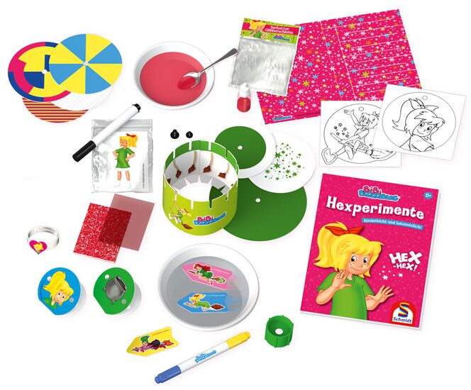 Ausprobieren und Staunen: Entdecke mit Bibi Blocksberg faszinierende Experimente: Lass Bibi auf ihrem Besen fliegen, hexe geheime Botschaften herbei und stelle deinen eigenen Hexschleim her. Bastelmaterial und Zutaten für diese und noch viele weitere spannende Hexereien findest du in dieser Box. Ob Wasserphänomene, optische Effekte oder Geheimschriften – hier ist Hexenspaß garantiert.
