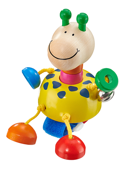 Die lustig bunte Giraffe freut sich, wenn sie bei der Ausfahrt gedrückt und bespielt wird. Bei jedem festen Druck auf den Kopf ertönt ein freudiges Quietschen. Mit Klettband für eine einfache und sichere Befestigungsmöglichkeit an Buggy und Kinderwagen. Für Unterhaltung sorgen ein Glöckchen und die eingebaute Hupe.