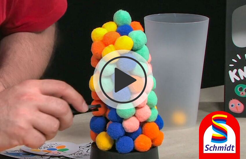 Das bunte Partyspiel für Jung und Alt: Federleicht aber schwer begeisternd! Fischt die lustigen Bällchen je nach Farbvorgabe geschickt aus dem Turm heraus und setzt sie weiter oben wieder ein. So entstehen die skurrilsten, unmöglichsten Turmformen und Gebilde. Verblüfft, dass die knuffigen Bällchen zusammenhalten? Verlasst euch nicht zu sehr darauf und Vorsicht: manchmal machen euch Challenge-Karten das Leben besonders schwer und ihr müsst noch mehr aufpassen, dass der Turm nicht einstürzt, denn dann steht der Verlierer fest und die anderen dürfen feiern! Losspielen, Hingucken, Mitfiebern!