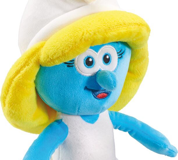 Die abenteuerlustige Schlumpfine, erkennbar an ihrem typischen weißen Kleid, ist äußerst mutig und hat oft die passende Idee parat. Hier als samtweiche Plüschfigur, ca. 27 groß.