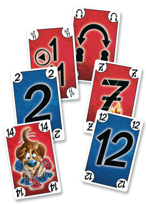 Versuche, mit deinem Teampartner zuerst je eine durchgehende Reihe aus 14 Karten zu bilden. Dabei könnt ihr euch gegenseitig unterstützen, Hilfskarten aus der Mitte eintauschen oder ganze Kartenstapel auf der Suche nach der passenden Karte durchwühlen. Doch Vorsicht, das gegnerische Team hat bestimmt noch eine Gemeinheit im Ärmel! Auch als Ersatzkarten für das DOG®-Brettspiel verwendbar.