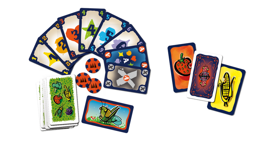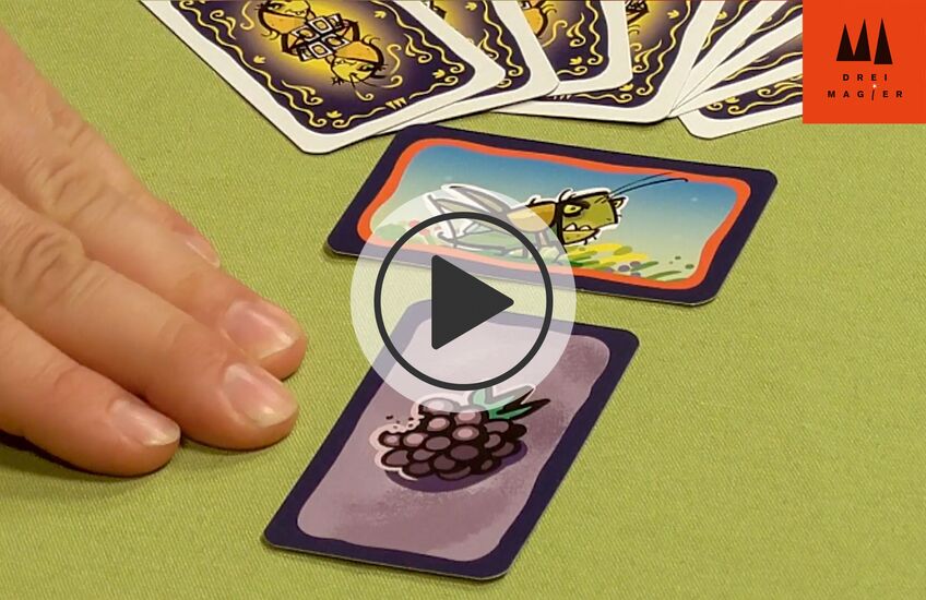 Wer schafft es am geschicktesten, seinen Garten anzubauen und sich aber gleichzeitig vor den gefräßigen Heuschrecken zu schützen? Alle bieten gleichzeitig mit ihren Pokerkarten auf die Gartenauslage. Das höchste Gebot gewinnt. Aber Vorsicht: Gleiche Karten stechen sich aus und die Ass- und Passkarten bringen richtig Würze ins Spiel!