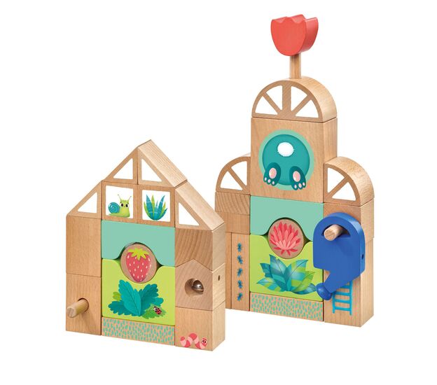Hier entstehen Bauwerke in immer neuen Variationen: Ob fantasievolle Gebäude, kreative Gartenlandschaften oder hohe Türme - mit dem 34-teiligen Set aus massivem Buchenholz ist alles möglich. Immer wieder lassen sich kleine Krabbler und weitere liebevolle Details entdecken. Durch die vielfältigen Gestaltungsmöglichkeiten werden Kreativität, Feinmotorik, räumliche Wahrnehmung und Geschicklichkeit des Kindes gefördert und langanhaltende Spielfreude ermöglicht.