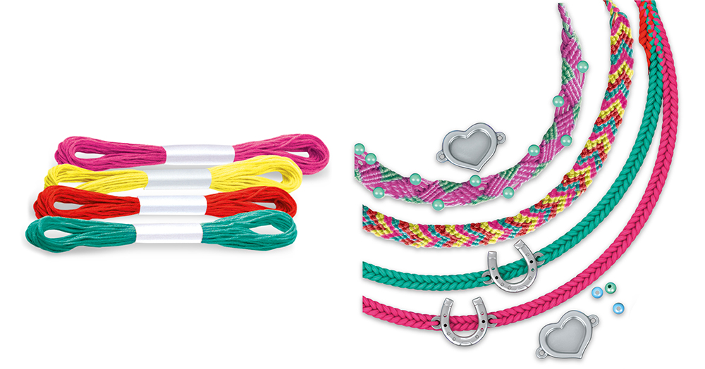 Mit diesem Komplett-Set könnt ihr die original Horse Club-Freundschaftsbänder für euch und eure besten Freundinnen knüpfen. Mit bunten Perlen und Anhängern werden daraus ganz leicht echte Schmuckstücke.