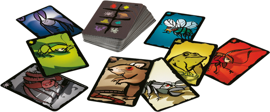 Igitt! Kakerlaken, Stinkwanzen und Spinnen: Bei dieser genialen Kartenschieberei verliert, wer sich zuerst von den anderen vier gleiche Karten andrehen lässt. Also cool bleiben und frech bluffen.