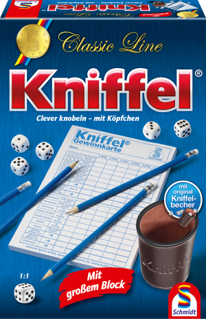 Wer Würfelspiel sagt, meint Kniffel®. Über Generationen hinweg bangen alle auf den fünften gleichen Würfel, um endlich einen Kniffel® eintragen zu können. Dieses abwechslungsreiche Spiel bringt Schwung in jede gesellige Runde. Kniffel® - der unterhaltsame Würfel-Klassiker für die ganze Familie mit Kunststoffwürfeln, großem Kniffelblock und Kniffelbecher.