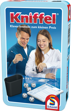 Alles drin ohne viel Drumherum. Mit Würfeln, einem Becher und einem Block ist hier alles zum Kniffeln bereit. Und das in der schönen Metalldose. Da macht sich selbst der Preis ganz klein. Und los!