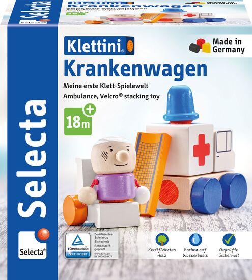 Bau Dir Deinen Krankenwagen: Kinderfantasien werden damit angeregt und sorgen so für Spaß. Kleinkinder können dabei ideal in neue Selecta® Spiele (Klett)-Welt eintauchen. Die Klettinis® werden für kleine Hände hergestellt und sind mit anderen Selecta® Klettsets für kreatives Bauen kompatibel.