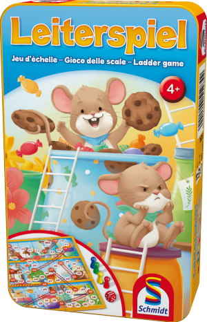 Die leckeren Kekse stehen ganz oben auf dem Küchenregal. Bei diesem lustigen Auf und Ab haben die kleinen Mäuse manchmal Glück und dürfen eine Leiter hinaufklettern, doch schnell sind sie wieder ein Stück zurückgefallen. Es bleibt also spannend. Wer zuerst die Keksdose erreicht, gewinnt das Spiel.
