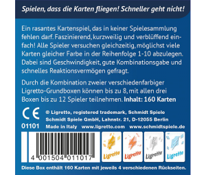 Ligretto®, das rasante Kartenspiel, das in keiner Spielesammlung fehlen darf! Jetzt im neuen Look! Geschwindigkeit, gute Kombinationsgabe und schnelles Reaktionsvermögen sind hier gefragt. Faszinierend, kurzweilig und verblüffend einfach!