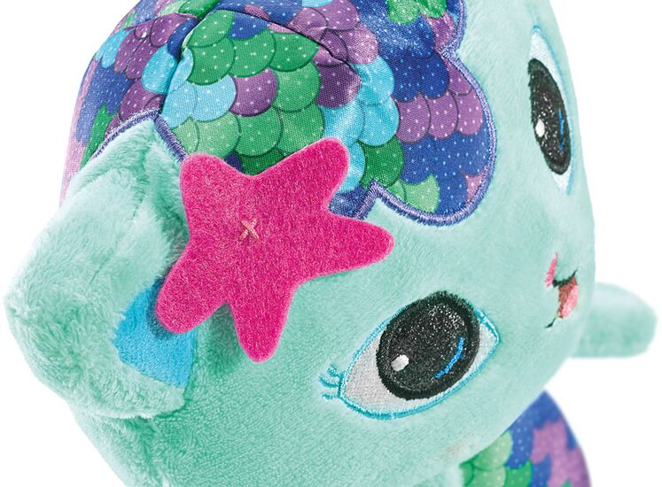 Das MEERKÄTZCHEN aus der fantasievolle Netflix-Serie GABBY’S DOLLHOUSE ist halb Meerjungfrau, halb Katze, die sich gern um ihr Aussehen kümmert. Sie glaubt, dass es kaum Wichtigeres gibt, als sich gut zu fühlen, gut auszusehen und Gutes zu tun. Die ca. 28 cm Original Plüschfigur mit pinkem Stern und Meerjungfrauenschuppen.