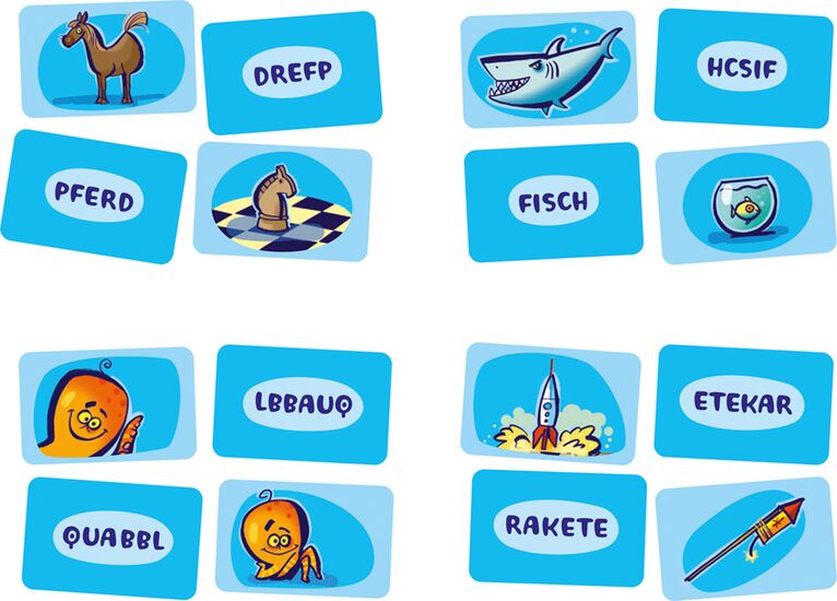 Findet ihr ein Paar aus 6 möglichen Kombinationen? In diesem neuen Spielsystem kann jede aufgedeckte Karte ein Match sein! Aber aufgepasst, manche Wörter sehen sich zum Verwechseln ähnlich und auch die unterschiedlichen Bilder eines Paares sorgen für die nötige Verwirrung! Auf geht’s und verquabblt euch nicht!