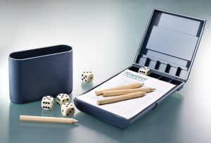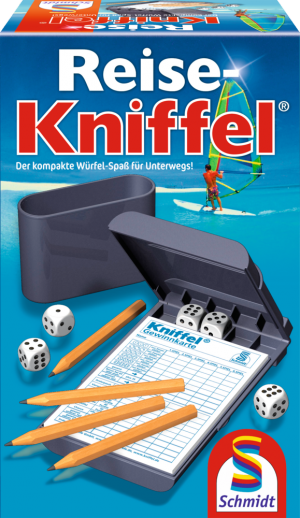 Mit viel frischem Wind kommt dieser Würfelklassiker daher. Das KNIFFEL®, das sich im Etui ganz klein macht, in dem aber vom Würfelbecher bis zum Bleistift alles drin ist, was man für eine große KNIFFEL®-Runde braucht.