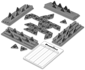 Diese Dominoteile sind dreieckig! So müssen nicht nur eine, sondern gleich zwei Zahlen passen. Dadurch ist das Spiel noch abwechslungsreicher und spannender als das bekannte Domino. Der Klassiker nun als handliche und günstige Reisevariante in der stabilen Metallbox.