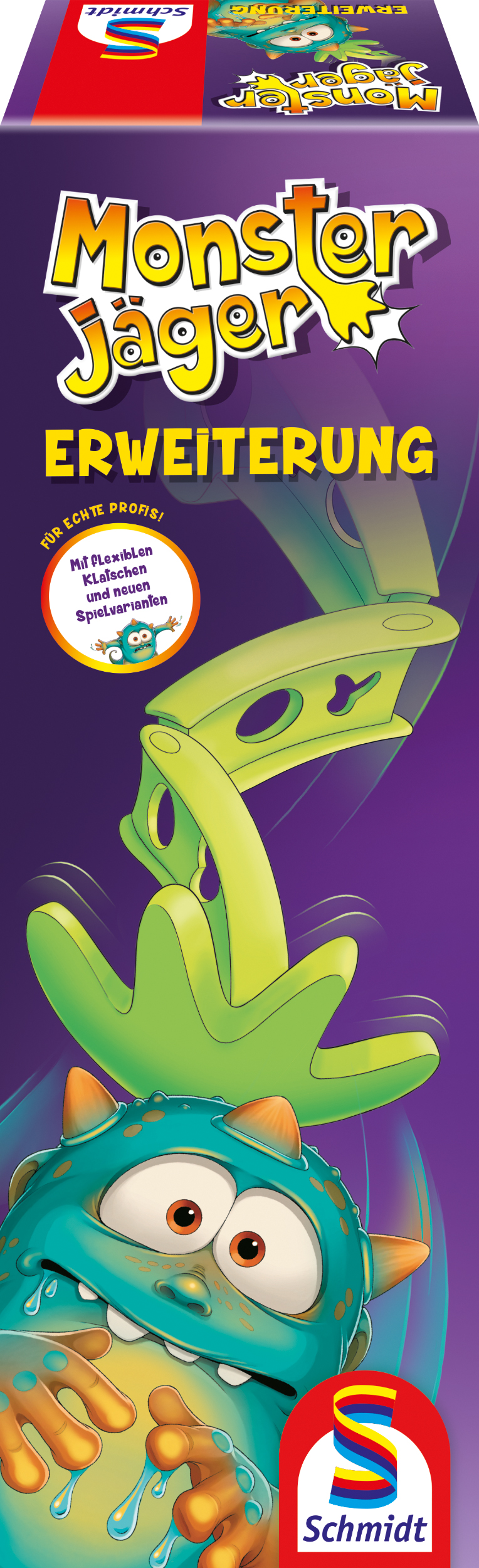 Berlin, Herbst 2021. War das nicht der Schatten eines kleinen Monsters? Puh, ganz schön schwierig, die kleinen Wesen so schnell zu erkennen. Denn die schrecklich-schönen Ungeheuer haben sich etwas Neues überlegt, um den Fängen der Monsterjäger:innen zu entkommen. Statt in ihrer ganzen Farbenpracht huschen sie nun als kleine Schattenwesen durch die Welt. Nur wahre Expert:innen können sie jetzt noch mithilfe der neuen Profiklatschen schnappen. Wer das als Erstes schafft, beendet das rasante Schnapp-Vergnügen und sichert sich den Sieg bei „Monsterjäger“ von Schmidt Spiele.