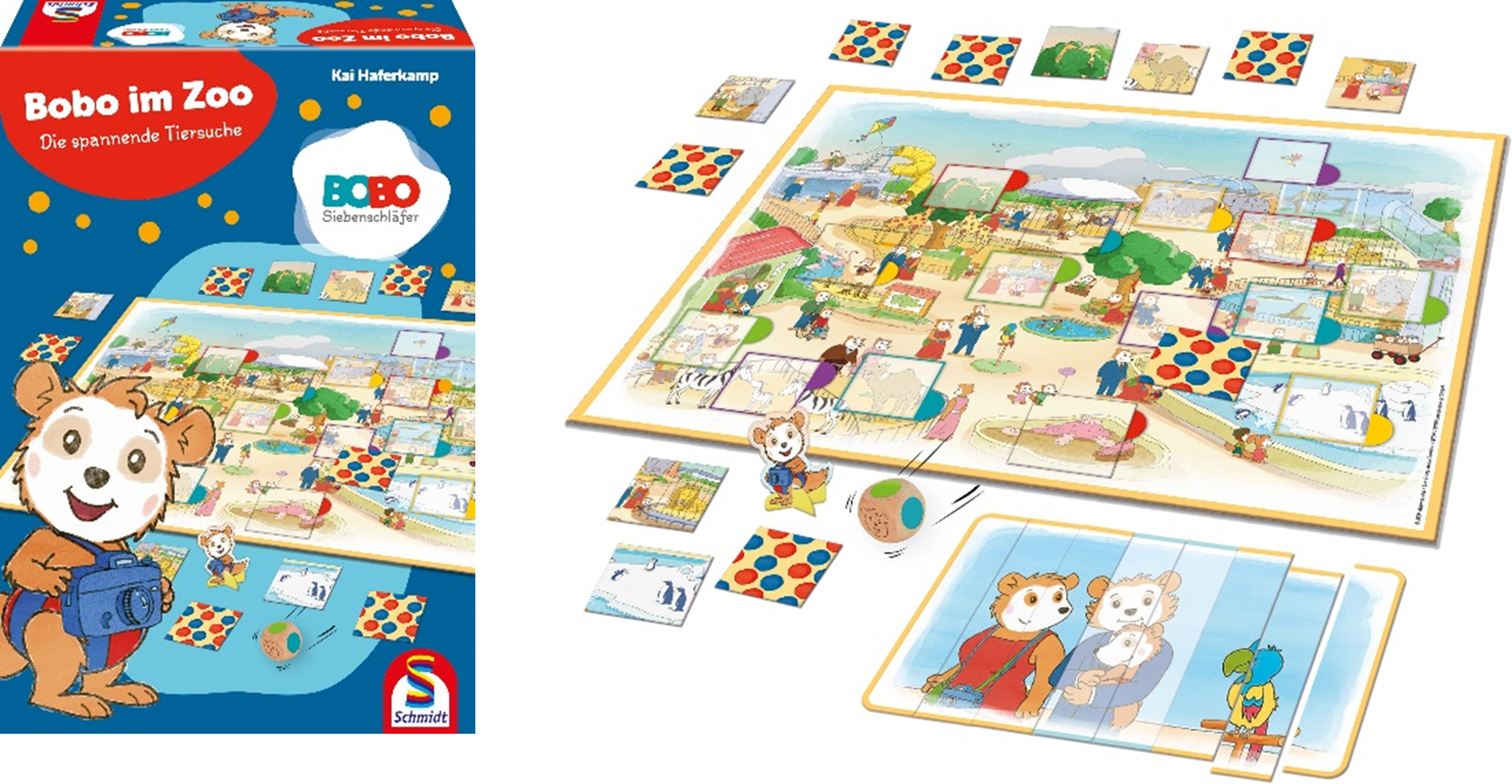 zuerst besuchen? Die rosaroten Flamingos vielleicht? Oder doch lieber die großen Elefanten? Fest steht, er möchte von allen ein schönes Foto machen – doch der Zoo ist groß und Bobos Augen werden langsam schwer. Das neue Kärtchen-Such- und Merkspiel von Schmidt Spiele® ist für ein bis vier Personen ab drei Jahren geeignet.