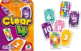 Berlin, Herbst 2025. Ablege- und Ärgerspaß, Spannung bis zum letzten Zug, Nervenflattern inklusive: „Clear 4“ ist die Spieleneuheit für alle mit einem Faible für Leichtigkeit und kluge Züge. In dem kurzweiligen Ablegespiel geht es darum, die eigenen Handkarten sowie die vor sich liegenden Kartenstapel geschickt zu kombinieren und auf dem Ablagestapel loszuwerden. Mit jedem Zug wächst dieser weiter bis ihn jemand nehmen muss, ein Rückschritt auf dem Weg zum Sieg – und nur ein erlösendes „Clear 4“ kann dies verhindern. Ein Spiel, das Spannung bis zur letzten Karte verspricht.